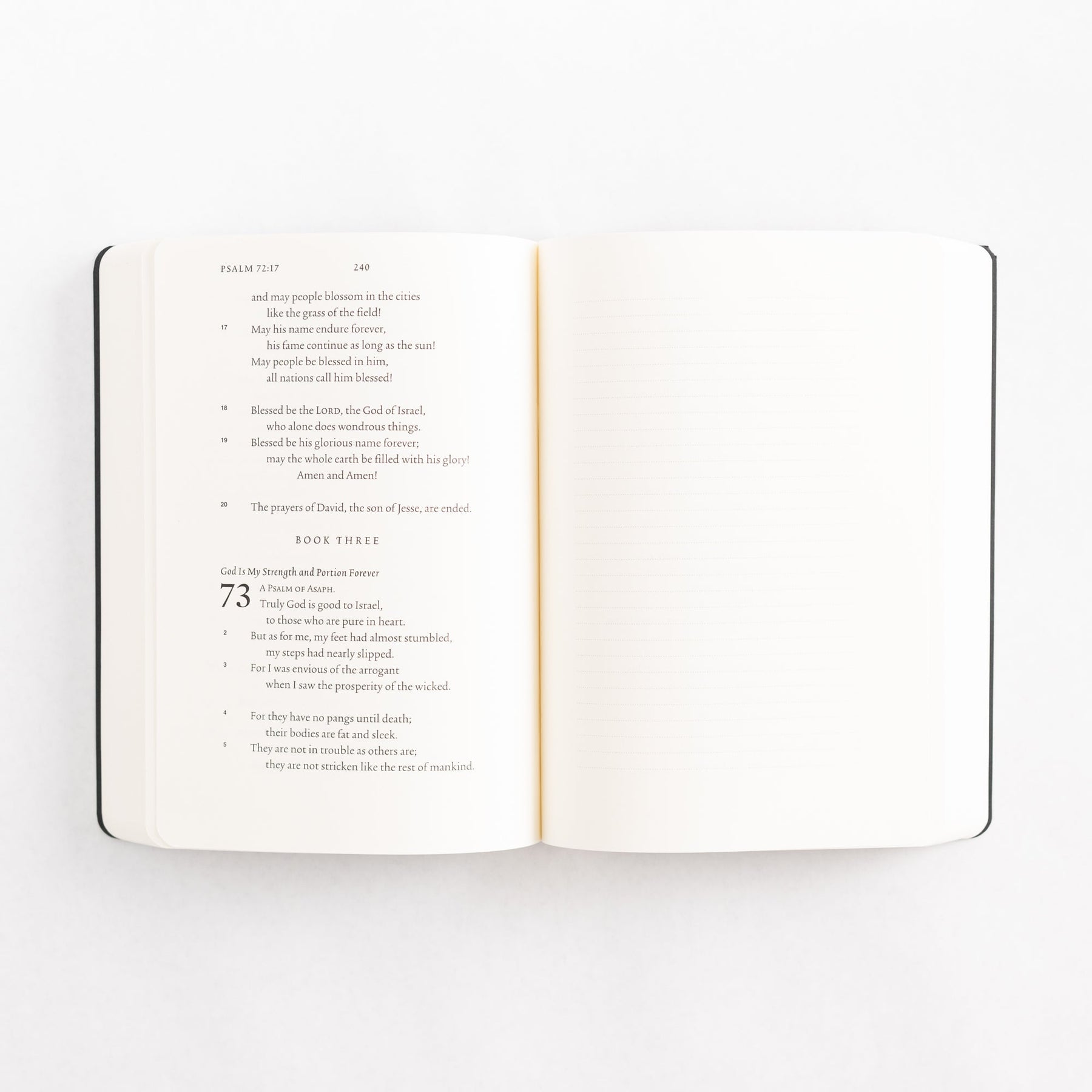 - Full, lightly ruled blank pages opposite each page of Bible text